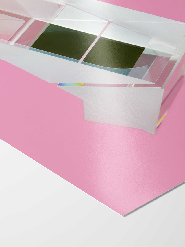 Diese Arbeit ist Teil einer Serie, die sich mit dem fotografischen Abtasten und Analysieren von Prismen für Hochleistungsgeräte beschäftigt, welche die hohen finalen Qualitätskontrollen der Hersteller nicht bestanden haben und deshalb keine Verwendung finden. Die Mängel, die zum Nichtbestehen der Kontrollen führen, reichen von der herkömmlichen Macke bis zum Mikrofehler, der mit bloßem Auge nicht erkennbar ist. (Ohne Rahmen)