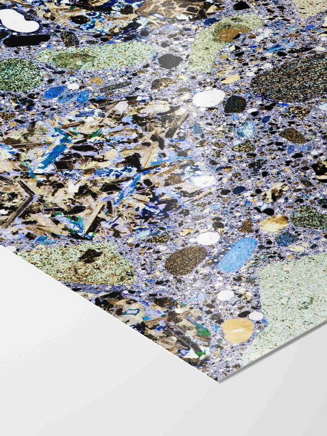 Ein sehr dünn geschliffener Stein kann Licht reflektieren, so dass er transparent erscheint. Auf diese Weise wird er zu einer medialen Metapher für das fotografische Glasnegativ, das in der Dunkelkammer vergrößert und auf Fotopapier fixiert wird. Reproduziert und auf 40 x 50 cm vergrößert ist es nun möglich „durch Stein zu sehen“. :)